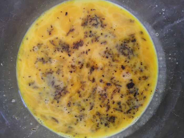 • Ajoutez 1 œuf battu, sel et poivre et mélangez.
